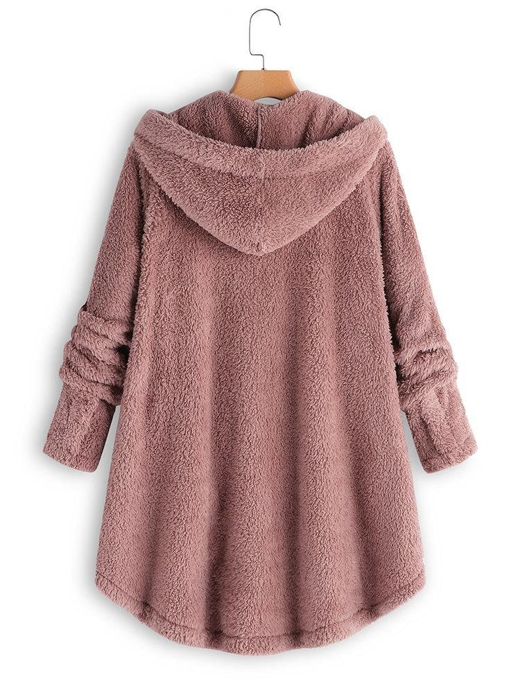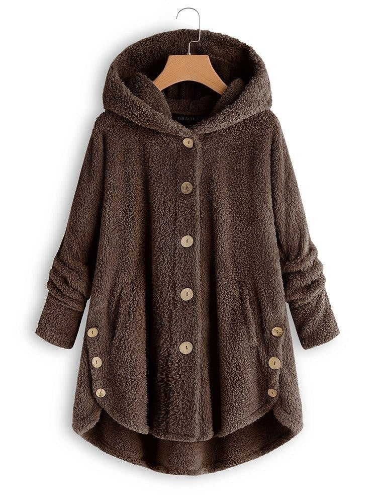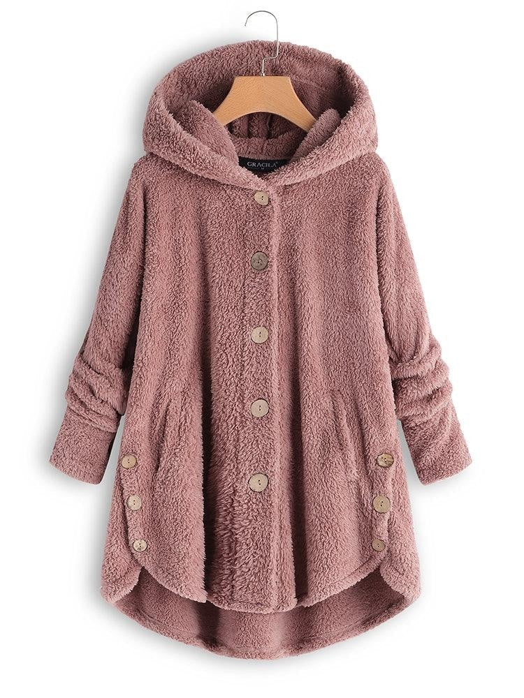 Karla | Vinter Dame Blød Frakke med Hætte og Knapper