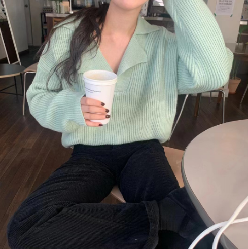Elegant Krave: Den klassiske krave giver et strejf af raffinement og løfter sweateren fra enkel basis til et mere sofistikeret valg.