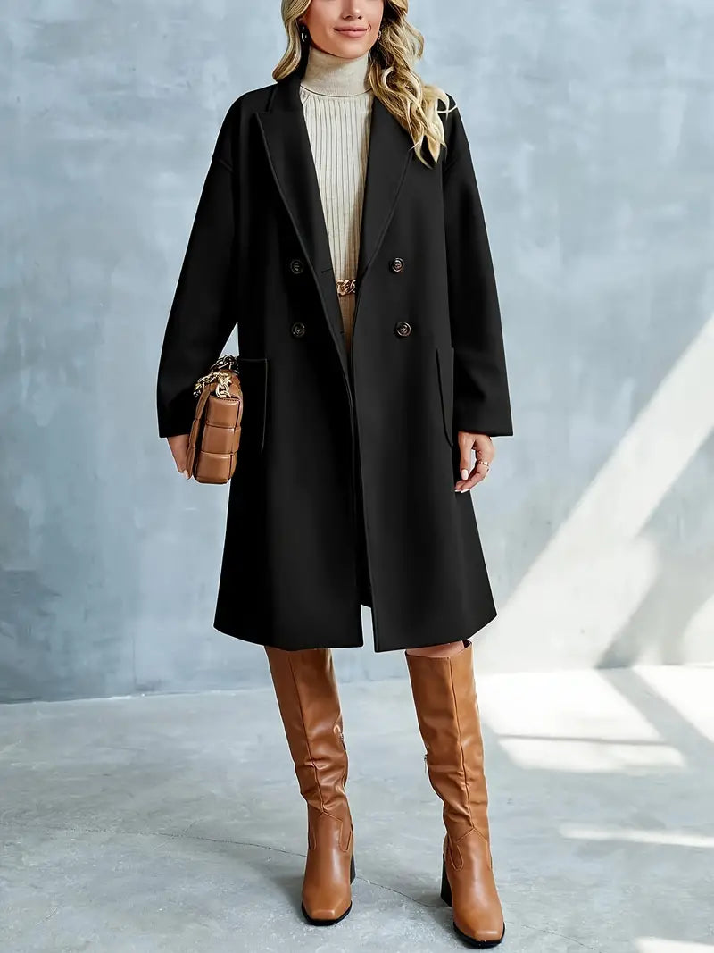 Ellen | Vinter Dame Dobbeltknappet Frakke med Lommer