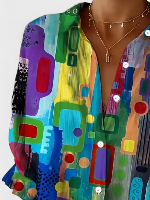 Opdag en bluse, der kombinerer komfort med stilfuldt design – Rose Kvinders Casual Bluse med Abstrakt Mønster. Denne bluse er designet til at fremhæve din silhuet på en flatterende måde, samtidig med at den viser et moderne, kunstnerisk mønster. Perfekt til fritid, arbejde eller særlige lejligheder.