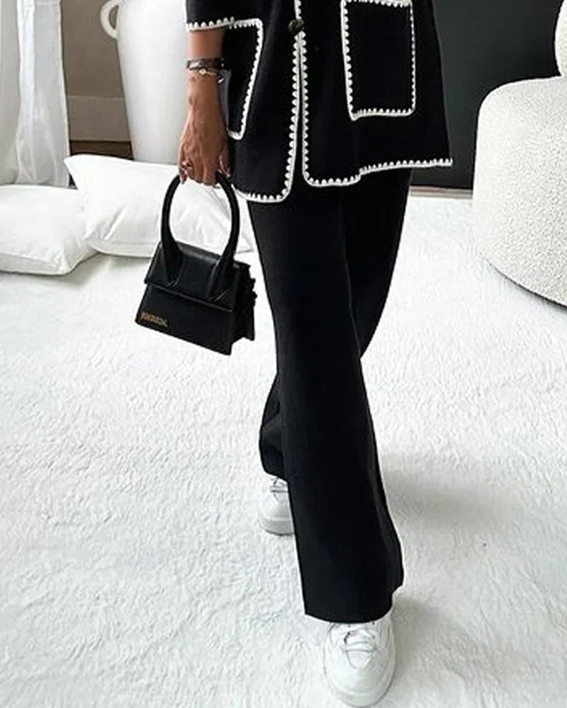 Tilfør din garderobe et strejf af moderne elegance med Vanja Damejakke Med Kontrastkant Og Knaplukning—en jakke, der aldri går af mode.